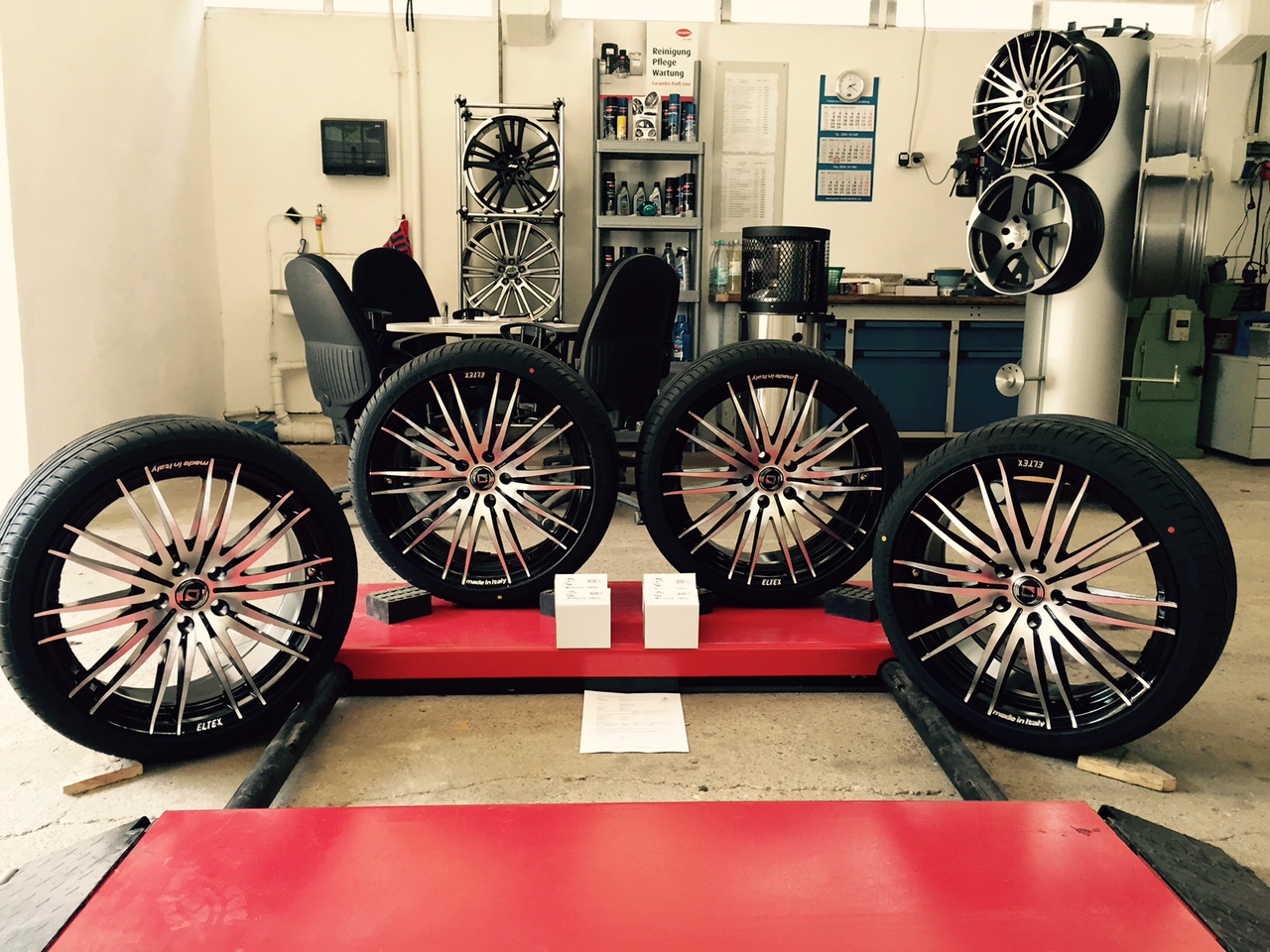 Wir haben auf Wunsch auch Reifen auf Alu-Felgen bis 24 Zoll für Sie vormontiert.